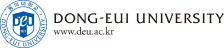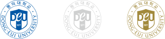 교표는 전체적으로 진리, 정의, 창의의 교육목표를 추구하며 전통과 최첨단이 공존하는 미래지향적인 동의대학교의 이미지를 형상화한 것으로, 중심에 있는 DeU는 Dong-eui University의 약자이다.